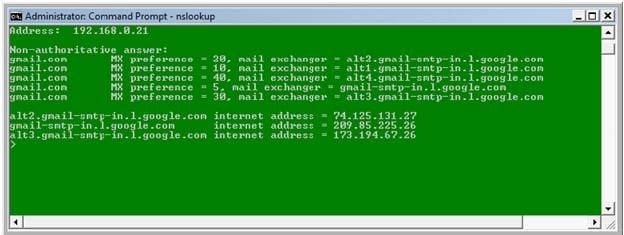 8- We need to focus on the primary Mail Exchanger with the small preference number, in this case it is number (5)and note it down (gmail-smtp-in.l.google.com)