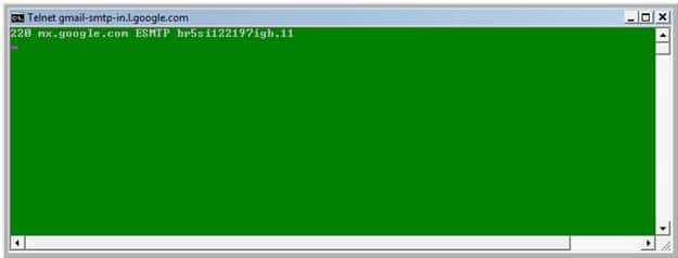 10- Type: telnet gmail-smtp-in.l.google.com 25 then click <Enter>
