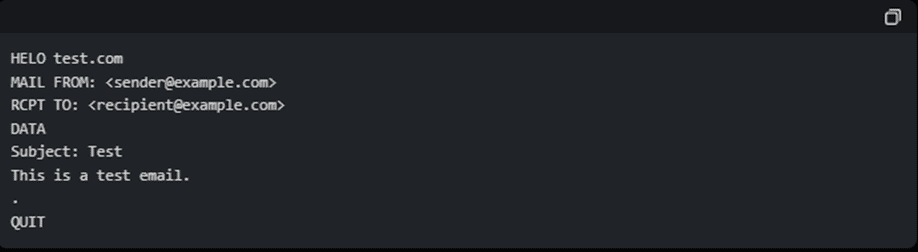 - Verify Server Functionality: By issuing protocol-specific commands (e.g., HELO, EHLO, or MAIL FROM for SMTP), you can check if the server is processing requests correctly.