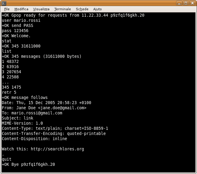 RETR vous enverra des numéros de message (msg#) et les affichera sur l’écran Telnet. Vous ne voulez probablement pas le faire en Telnet, à moins que vous n’ayez activé la journalisation Telnet.
