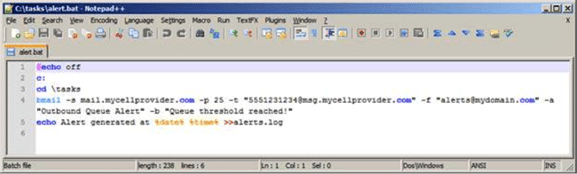 - Créez un script de ligne de commande (fichier batch) qui sera appelé pour envoyer l’alerte.