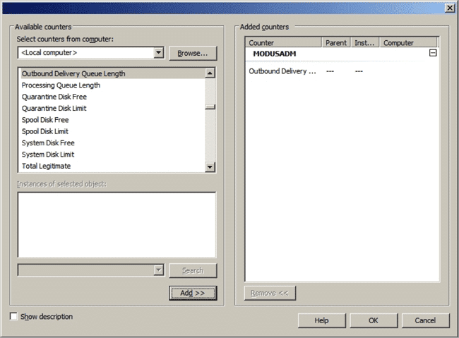 - Sélectionnez le compteur que vous souhaitez utiliser pour la surveillance et ajoutez-le à la liste des compteurs en cliquant sur le bouton Ajouter en bas et cliquez sur OK.