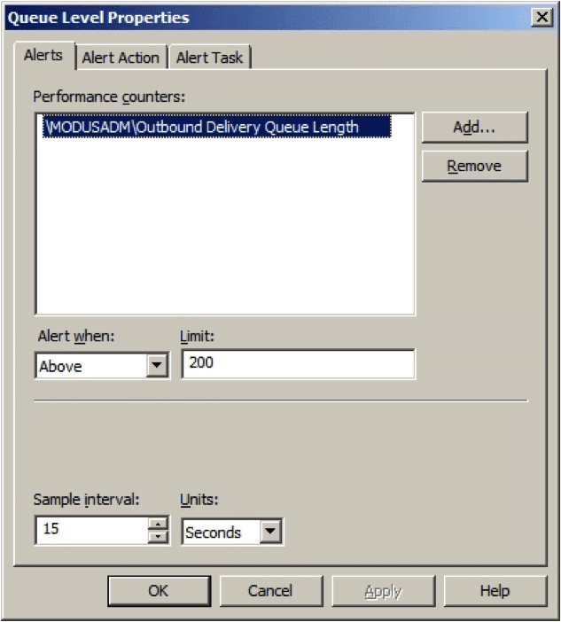 Dans mon cas, je veux une alerte s’il y a plus de 200 messages dans la file d’attente sortante.