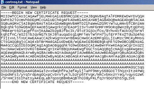 16. Naviguez jusqu’au chemin où vous avez enregistré le fichier de certificat (étape 13) et ouvrez-le avec un éditeur de texte (p. ex., Bloc-notes)