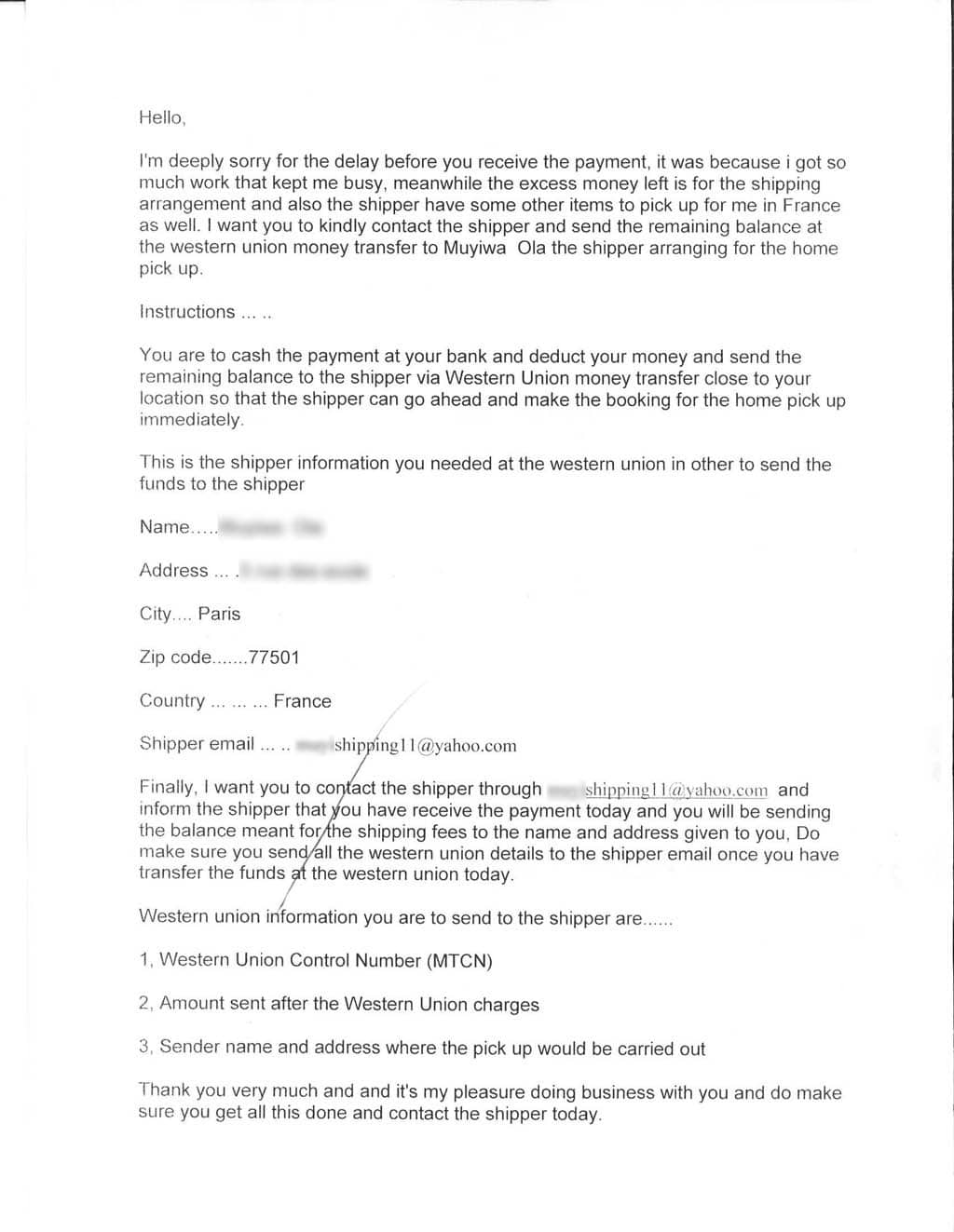 3. Le mandat arrive avec une lettre de Paris, de France, ou de quelque part à l’autre bout du monde de votre