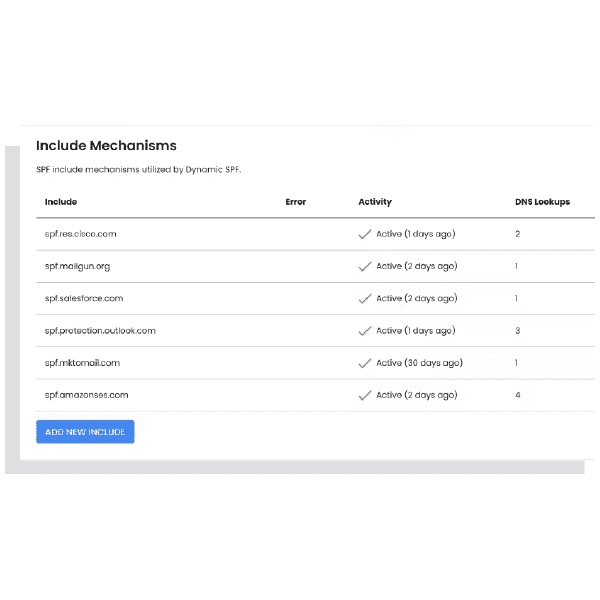Dynamic SPF allows you to bypass the 10-lookup limit of SPF by using a single dynamic include to combine all authorized services at the point of query. This prevents SPF validation failure and maintains robust email deliverability.