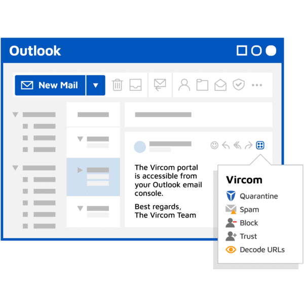 Vircom’s Outlook add-in enables users to report phishing directly from their inbox, even on mobile.